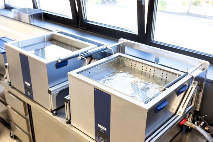 Unsere universell konfigurierbare Korb-Oszillation ist eine kompakte Nachrüstlösung, die den Reinigungskorb in Ihrem Ultraschallbad automatisch auf- und abbewegt. Diese gezielte Bewegung verstärkt die Wirkung des Ultraschalls, verbessert die Spülung und sorgt für eine gleichmäßige Reinigung – selbst bei komplexen Geometrien. Durch die Kombination von Ultraschall und Korb-Oszillation werden selbst feinste Partikel zuverlässig entfernt und gelöste Verschmutzungen sicher ausgespült.